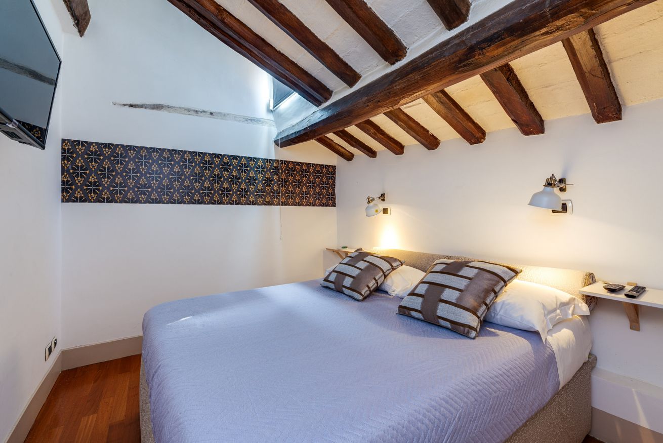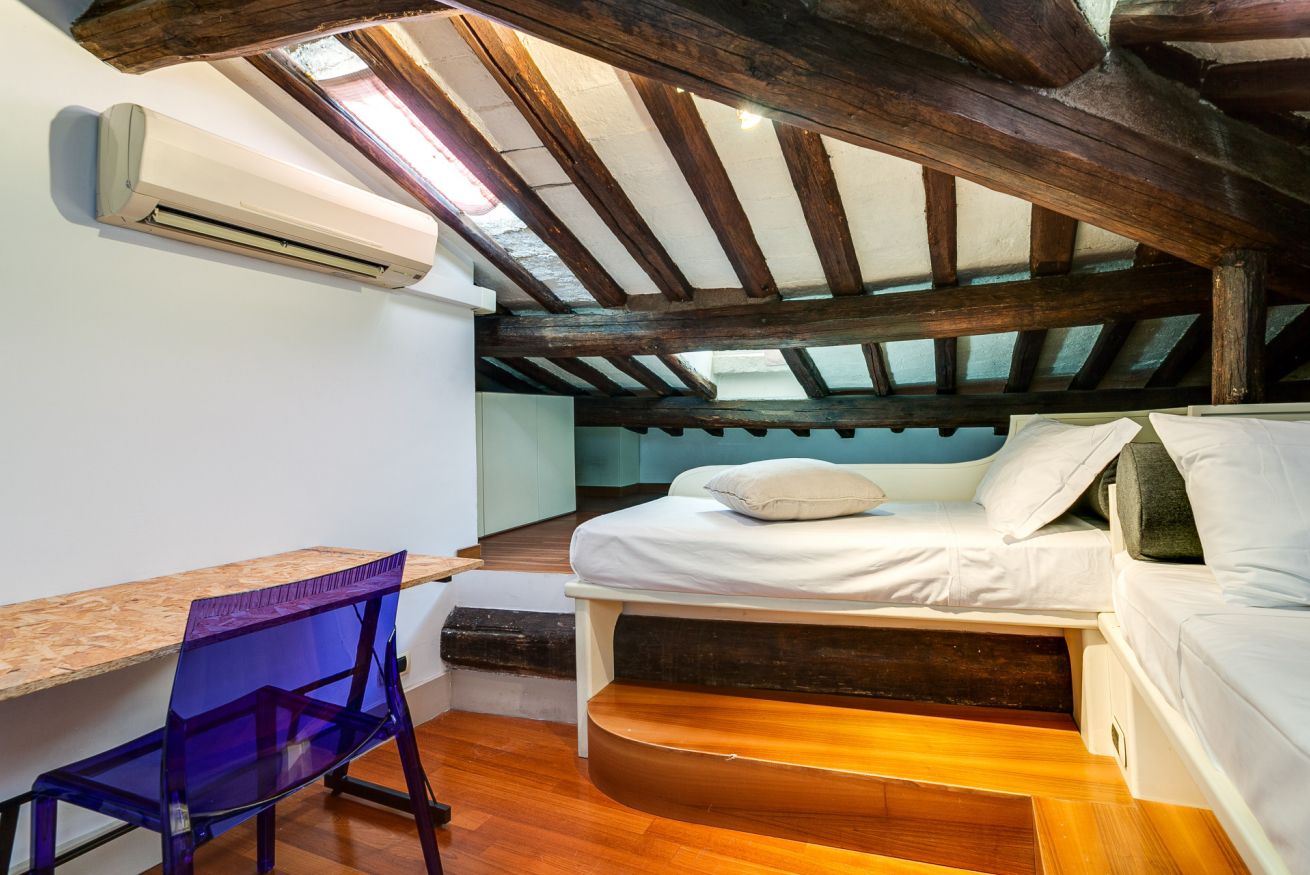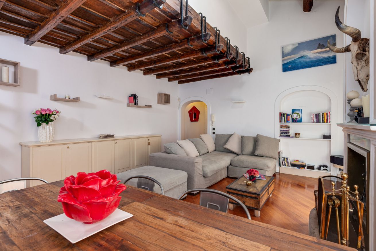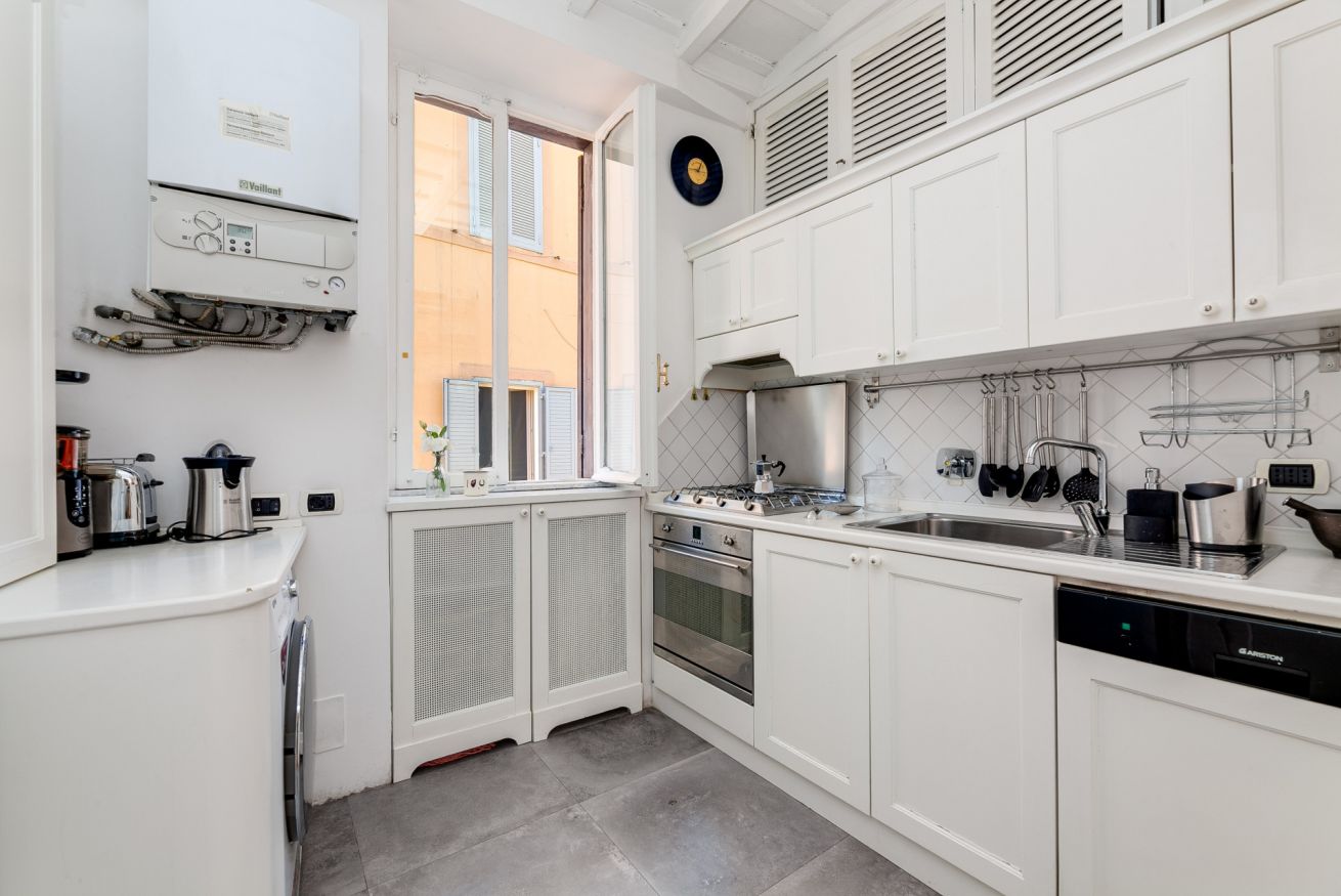Splendido appartamento a due passi da Piazza Navona e Campo de' Fiori, in una tranquilla via del cuore della vecchia Roma. Distribuito su due livelli, offre una camera matrimoniale con bagno en suite, un ampio salone con camino e una cucina ben attrezzata al piano inferiore. Al secondo livello, due camere da letto e un bagno con doccia. Dotato di Wi-Fi e aria condizionata, rappresenta un rifugio prestigioso al centro di Roma.